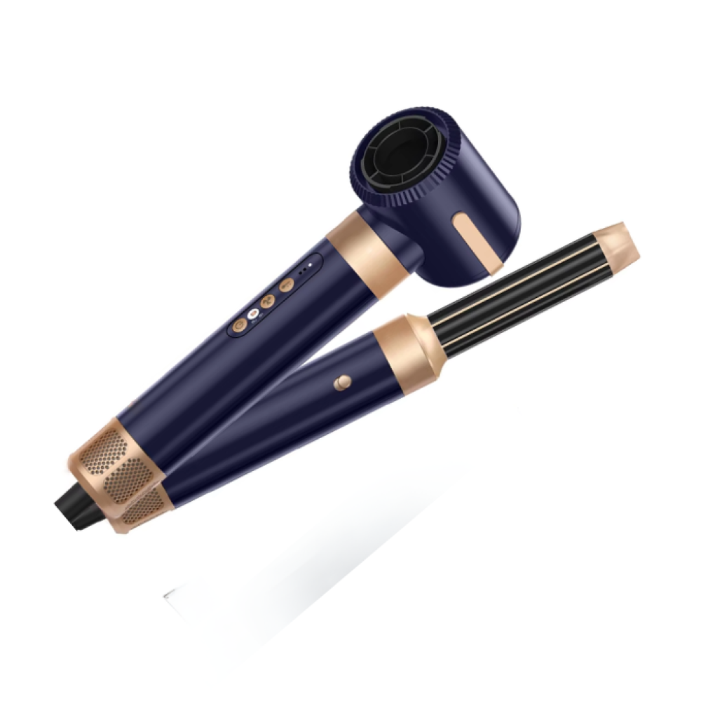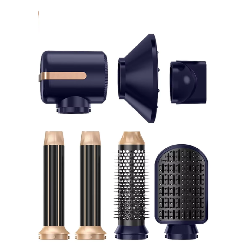 - أدوات متعددة: فرشاة هواء ساخن، بكرات للتجعيد، ملحق لفرد الشعر، ومجفف قوي.